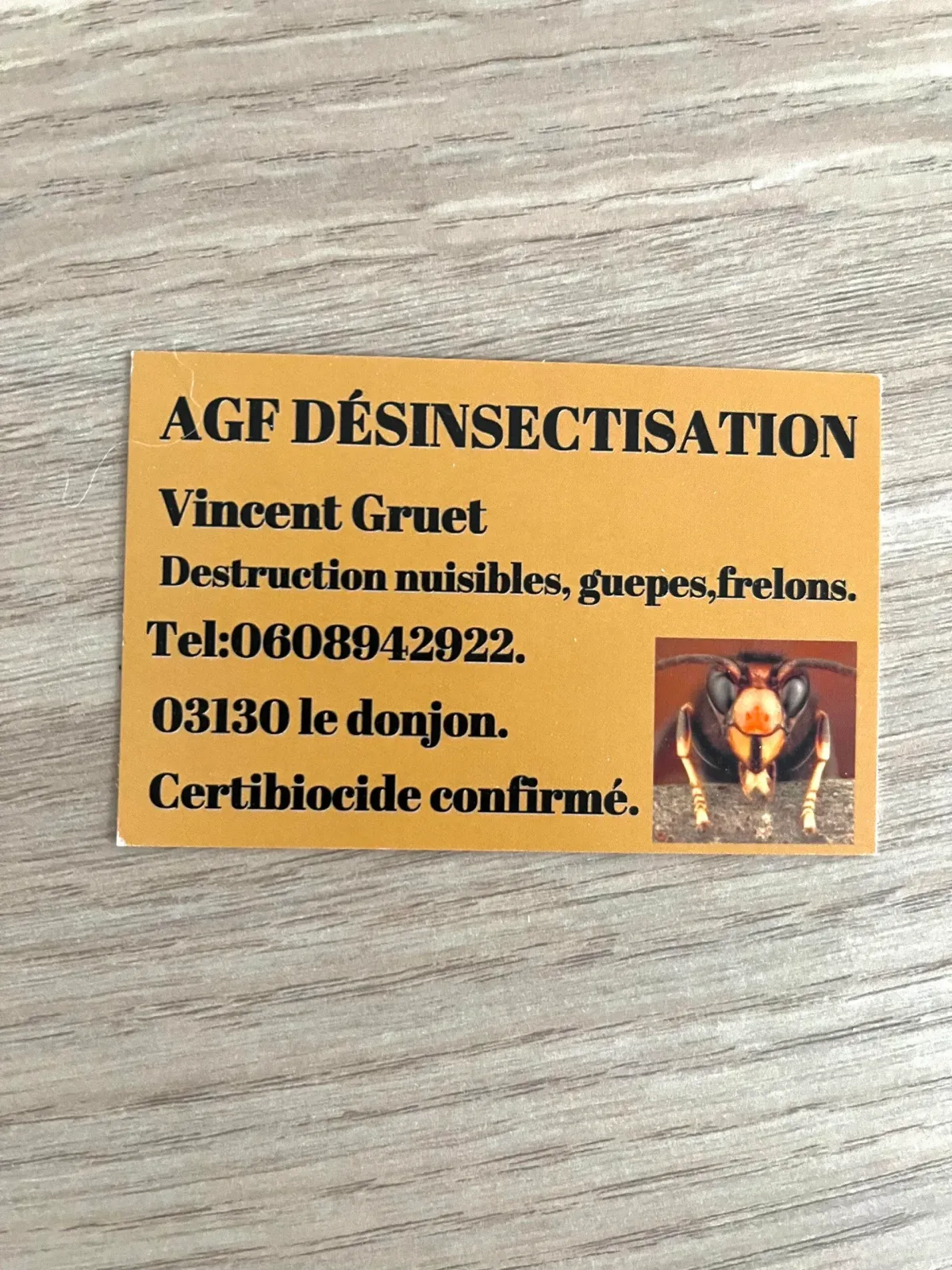 Faites confiance à AGF DÉSINSECTISATION pour retrouver tranquillité et sécurité. Contactez Vincent Gruet pour une intervention professionnelle et efficace contre les guêpes et frelons.